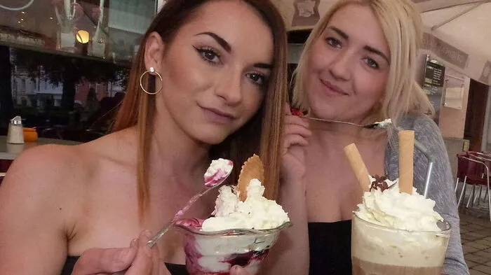 Sabrina Pchelarova und Arjana Ganzer aus Fohnsdorf im „Gastgarten mit italienischem Flair“ in Judenburg. Mittoni-Chef Michael Mehr servierte unverhofft bombige Schlemmereien