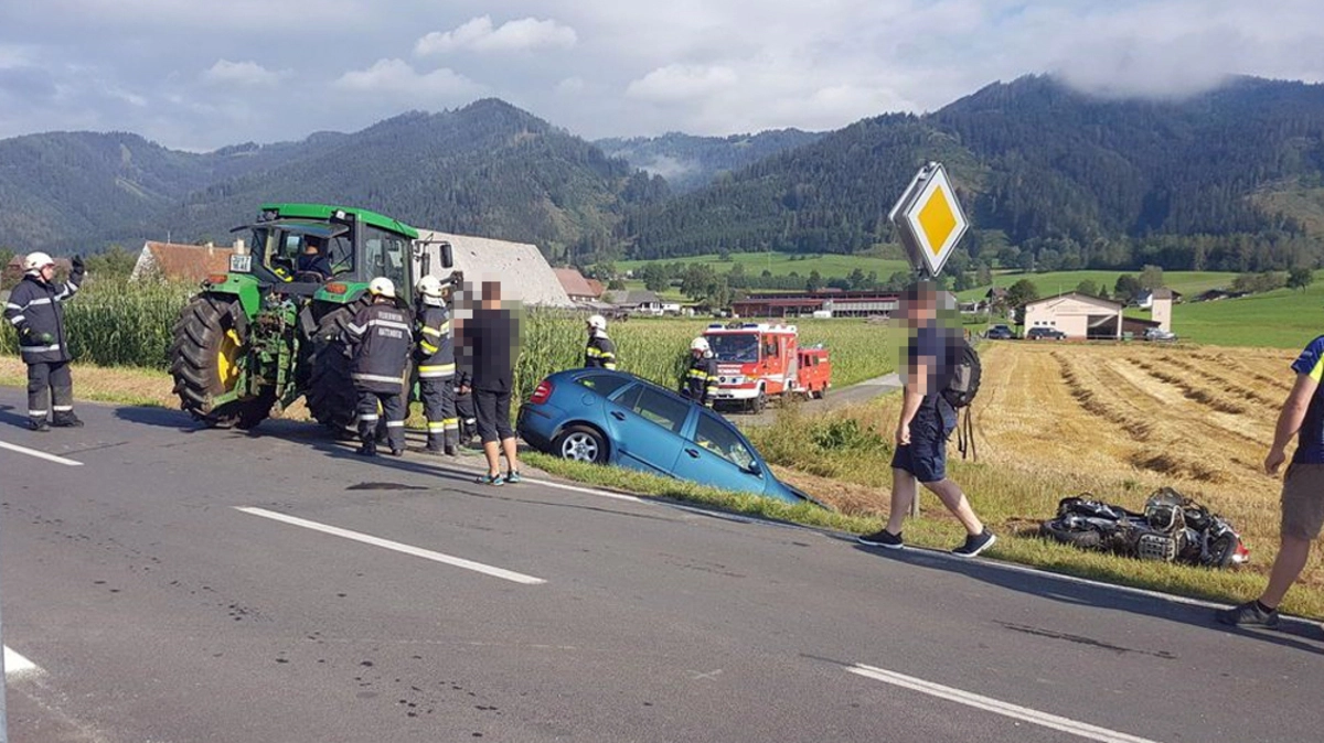 Sonntagfrüh kam es bei der Anreise nach Spielberg zu einer Kollision zwischen einem Pkw und einem Motorrad. Der Lenker wurde verletzt, die Straße musste kurzfristig gesperrt werden: Stau.