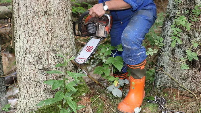 Baumstamm prallte gegen Unterschenkel eines 72-Jährigen