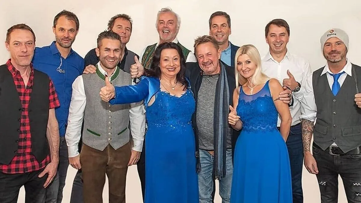Rudi Weißenbacher (vorne Mitte) hier vorm Auftritt der Seer in Spielberg, ärgert sich über das Onlineportal, das Karten für das Konzert zu Wucherpreisen verkaufte