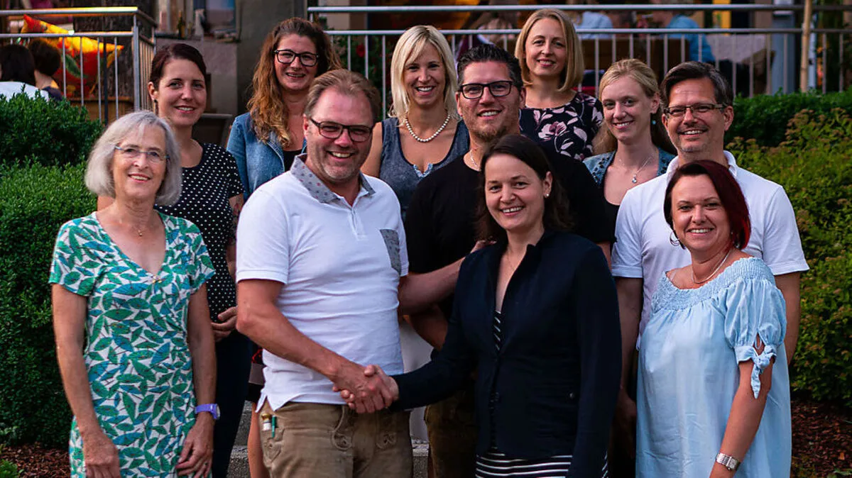 Andrea Reiner (links) verabschiedete sich in den Ruhestand, ihr folgt Heike Stückler (rechts) nach. Monika Bichler tritt im Elternverein die Nachfolge von Peter Persch an (beide vorne Mitte)