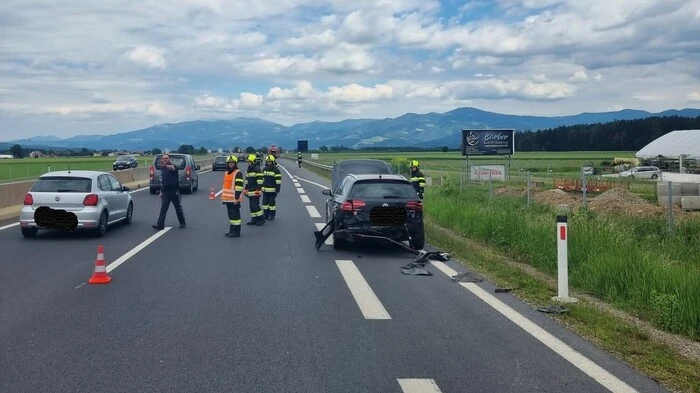 Zwei Fahrzeuge gerieten am Samstag auf der S36 aneinander und ins Schleudern. 25 Florianis sowie Polizei und Rettung rückten aus, die Autoinsassen blieben glücklicherweise unverletzt.