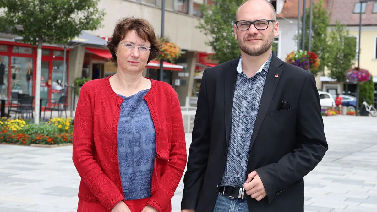 Renate Pacher und Josef Meszlenyi (beide KPÖ) vor dem Knittelfelder Rathaus. Ob Pacher bei der nächsten Gemeinderatswahl erneut Spitzenkandidatin wird, sei noch nicht fix. Antreten wolle sie jedenfalls wieder