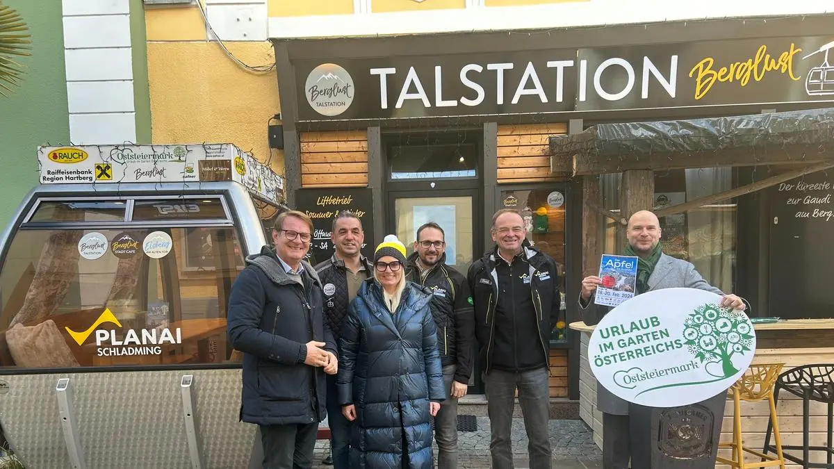 Zum zweiten Mal startet die „Berglust Talstation“ in die Wintersaison, wieder mit einer aufgestellten Planai-Gondel als Anziehungspunkt für ihre Gäste. Zur Eröffnung war auch Planai-Bahnen-Chef Georg Bliem in Hartberg.