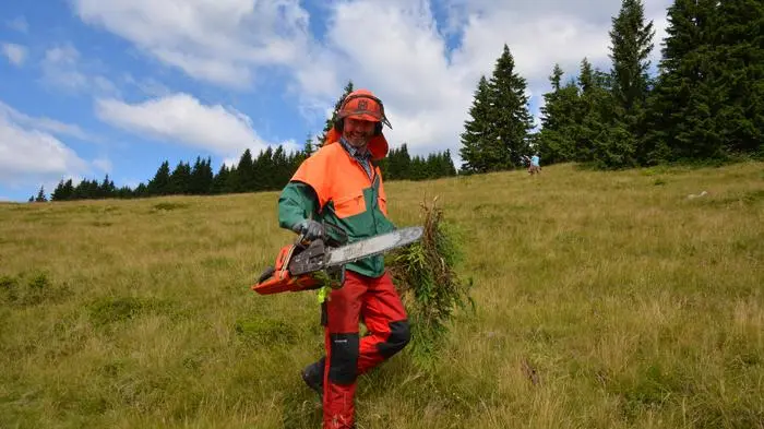 Beim Almputztag der Landwirtschaftskammer und des steirischen Almwirtschaftsverein helfen jedes Jahr Freiwillige, um die Almen vor Verwaldung und Verwilderung zu schützen. So auch auf der Alm am Hochwechsel, wo am Samstag zehn Helfer die Weideflächen von kleinen Bäumen befreit haben.