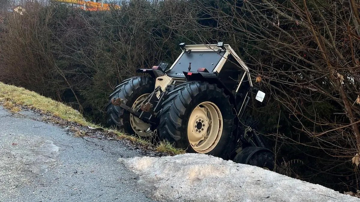 Am Freitag landete ein Traktor im Bachbett im Ortsgebiet von Vorau. Der Fahrer war beim Eintreffen der Feuerwehr nicht vorzufinden.