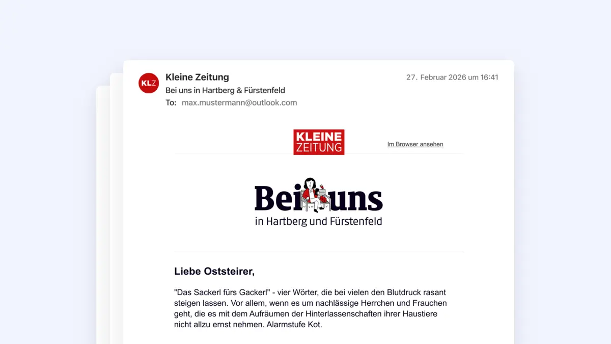 Was bewegt die Region? Wie läuft die redaktionelle Arbeit hinter den Kulissen ab? Was ist Ihre Meinung zu umstrittenen Themen im Bezirk Hartberg-Fürstenfeld? Diesen Fragen widmen wir uns in dem neuen Newsletter „Bei uns in Hartberg & Fürstenfeld“.