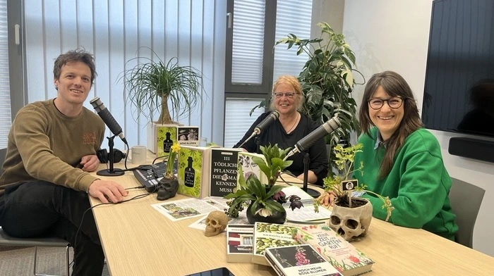Blumentöpfe, die wie Totenköpfe aussehen: Die Deko, die Giftgärtnerin und Krimiautorin Klaudia Blasl für die Video-Aufzeichnung des „delikt“-Podcasts der Kleinen Zeitung im Regionalbüro Hartberg im Gepäck hatte war durchaus ungewöhnlich. Im Gespräch mit delikt-Host David Knes und Redakteurin Carmen Oster erklärte Blasl, warum sie „literarisch auf Giftmorde umgestiegen ist“ und mittlerweile in ihrem 1000 Quadratmeter großen Garten über 300 verschiedene Giftpflanzen versammelt. „Mit Gift hinterlässt man keine Spuren, es ist eine nachwachsende Ressource und man versaut auch nicht das Wohnzimmer“, erklärte die Autorin mit dem schwarzen Humor – und Daumen.