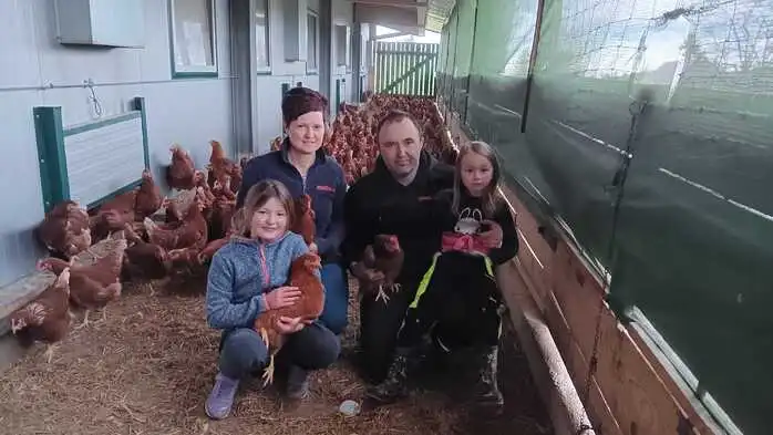 Familie Reiterer vom Loiblhof in St. Lorenzen am Wechsel. Die Hühner müssen momentan wegen der Vogelgrippe im Stall bleiben – Ostereier gibt es trotzdem