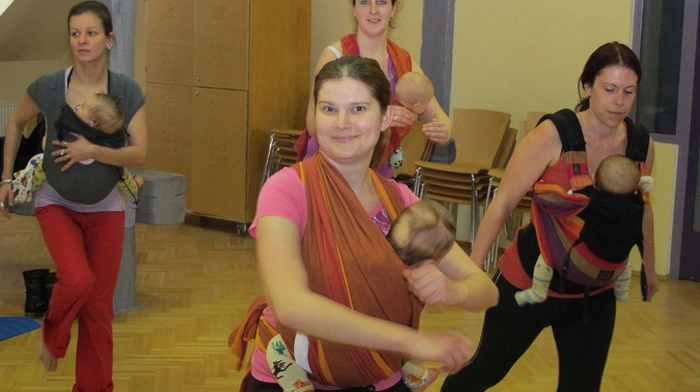 Einmal pro Woche treffen sich Mütter und Babys in Fürstenfeld zum Kanga-Training. Während die Mamas Sport treiben, entspannen sich die Kinder im Tragetuch.