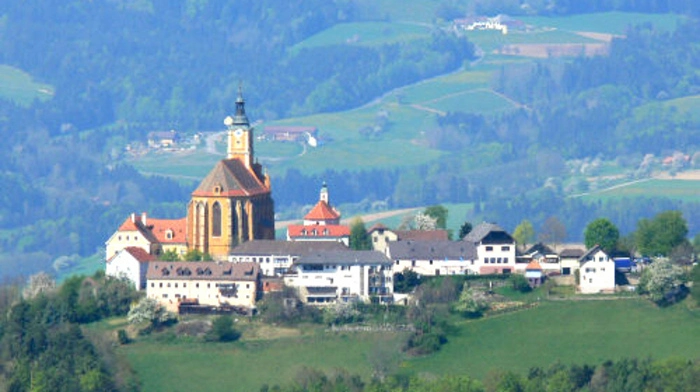 Um die Sicht auf die Wallfahrtskirche in Pöllauberg freizugeben, wurde vor dem Portal Wald geschlägert. Der Waldbestand im Tal soll generell reduziert werden.