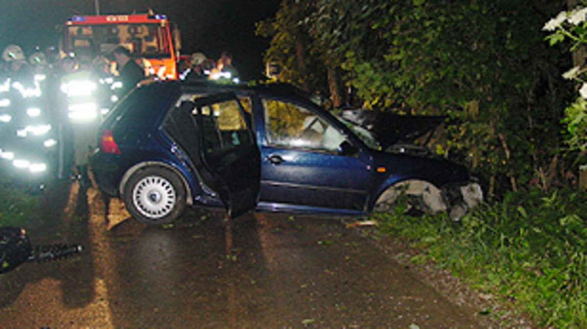 Der Lenker kam aus ungeklärter Ursache von der Straße ab und prallte frontal gegen einen Baum. Die Feuerwehr musste ihn heraus schneiden, da er eingeklemmt war.