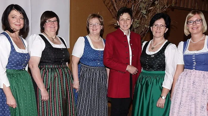 Bäuerinnentag: Fachberaterin Christine Sommersguter-Maierhofer, Bezirksbäuerin Elfriede Samer, Landesbäuerin Auguste Maier, Bundesbäuerin Andrea Schwarzmann, Bezirksbäuerin Maria Haas, Fachberaterin Claudia Doppler
