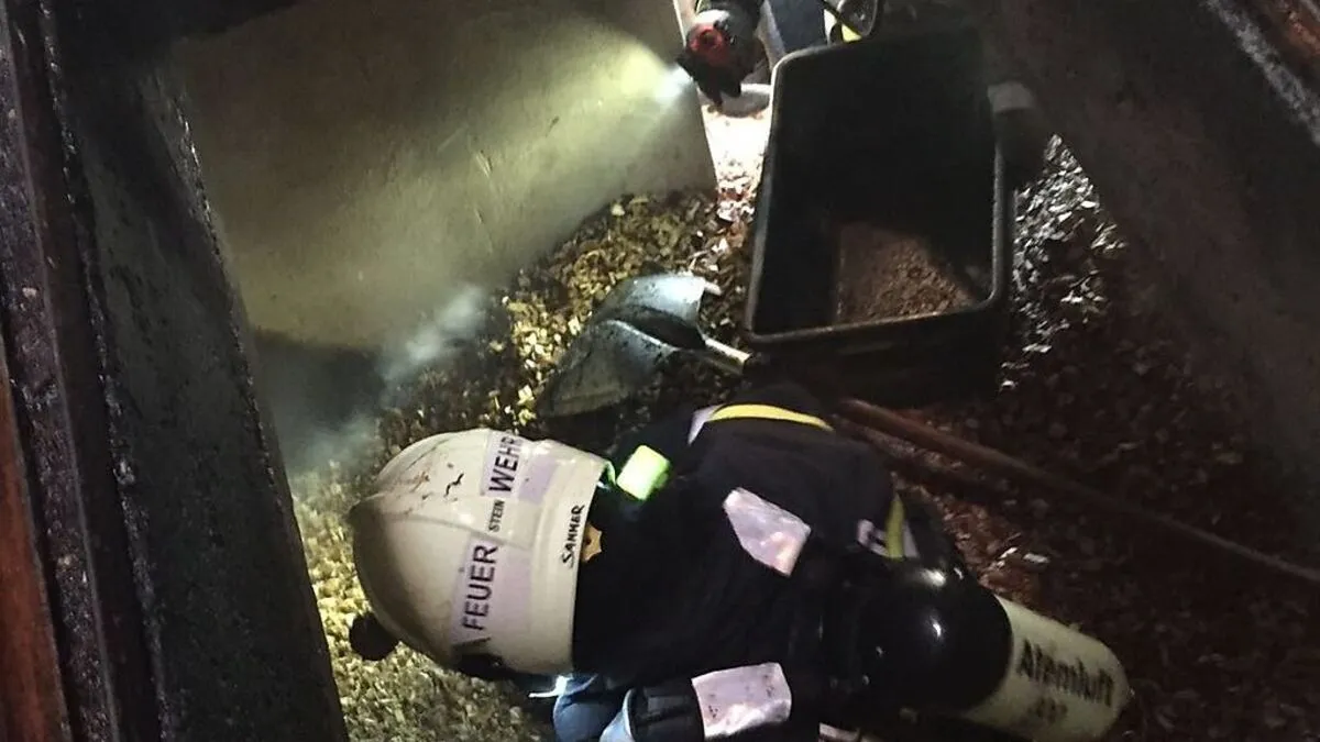 In Stein bei Loipersdorf gerieten Donnerstagvormittag in einem Nebengebäude eines Wohnhauses gelagerte Hackschnitzel in Brand. Als das Feuer unter Kontrolle war, mussten die Einsatzkräfte unter Atemschutz den gesamten Lagerraum leerschaufeln.