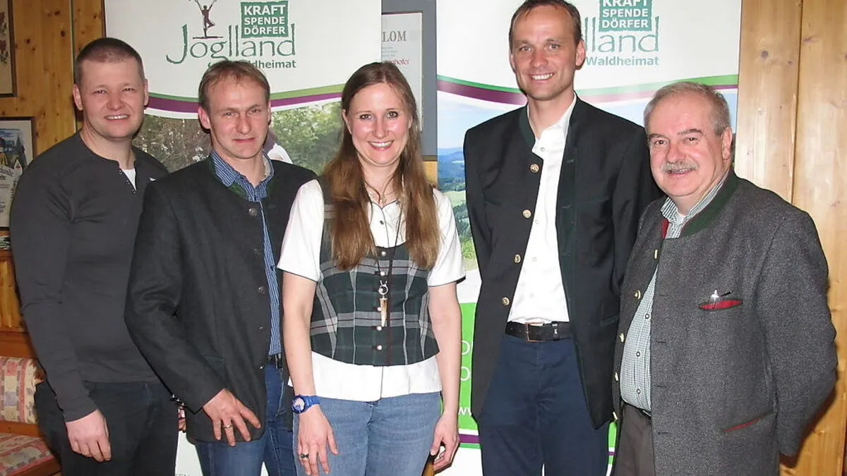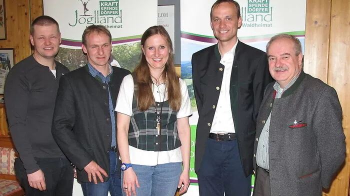 Finanzreferent Erich Tösch, Obmann Oliver Felber, Geschäftsführerin Stephanie Lehner, Gernot Sick (Steiermark Tourismus), Bürgermeister Anton Doppler (Obmann der Leadergruppe "Kraftspendedörfer Joglland")