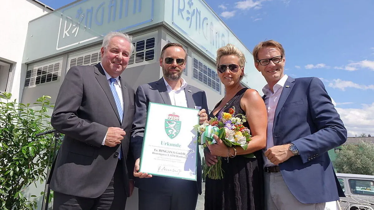 Der Hartberger Naturkosmetikhersteller Ringana ist nun Träger des steirischen Landeswappens. Landeshauptmann Hermann Schützenhöfer überreichte die Urkunde. Von Kirin Kohlhauser