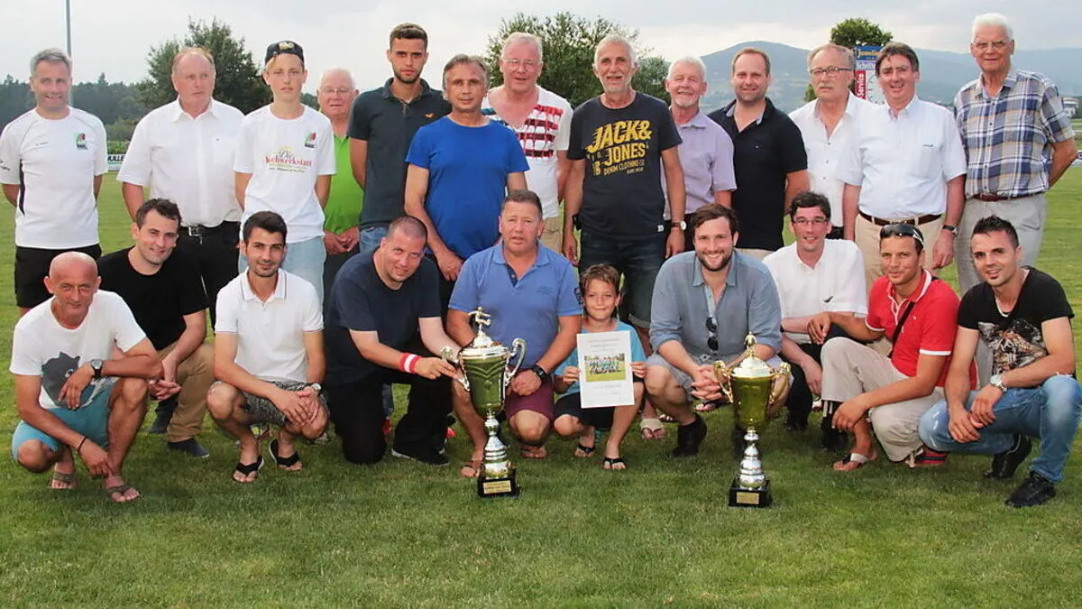Schiedsrichter als Fußballer: Die Sieger aus dem Gebiet Graz im Kreis der Ehrengäste.