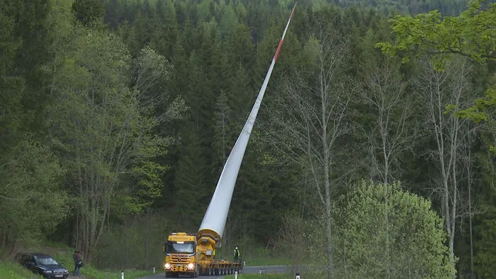 Schwertransport: So wird ein 54 Meter langer Windradflügel auf den Berg transportiert