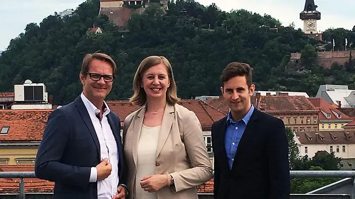 Um die Stärkung der regionalen regionalen Wirtschafts- und Tourismusbetriebe ging es am Dienstag beim einem Gespräch des Hartberger Bürgermeisters Marcus Martschitsch (VP) gemeinsam mit VP-Landtagsabgeordneten Lukas Schnitzer bei der neuen Wirtschaftslandesrätin Barbara Eibinger-Miedl (VP) in Graz. Eine der innovativen Ideen, von denen Martschitsch der Landesrätin berichtete, war die Idee eines Gründerzentrums im Ökopark.