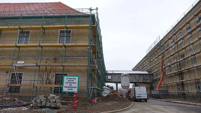 Das Schloss am Stein auf dem ATW-Gelände ist derzeit eine Baustelle, bis April soll ein Ärztezentrum entstehen