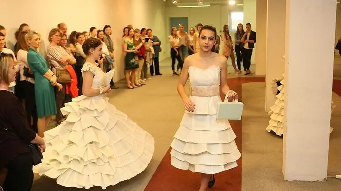 Schülerinnen bastelten Kleider aus alten Büchern