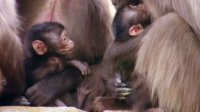 Die beiden Dschelada-Weibchen Makini und Yuna haben in der Tierwelt Herberstein vor Kurzem jeweils ein Baby auf die Welt gebracht. Vater beider Jungtiere ist der achtjährige Paibi. Für alle drei Tiere ist die Elternschaft eine Premiere.