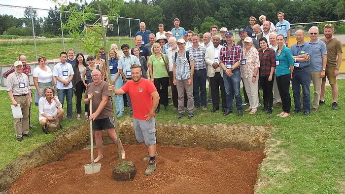 Teilnehmer des Weltkongresses der Pflanzenkohle-Hersteller besuchten am Dienstag die Ökoregion Kaindorf. Dabei wurde ein Klimabaum nach einer neuen Methode gepflanzt, die Städte vor dem Klimawandel schützen könnte.