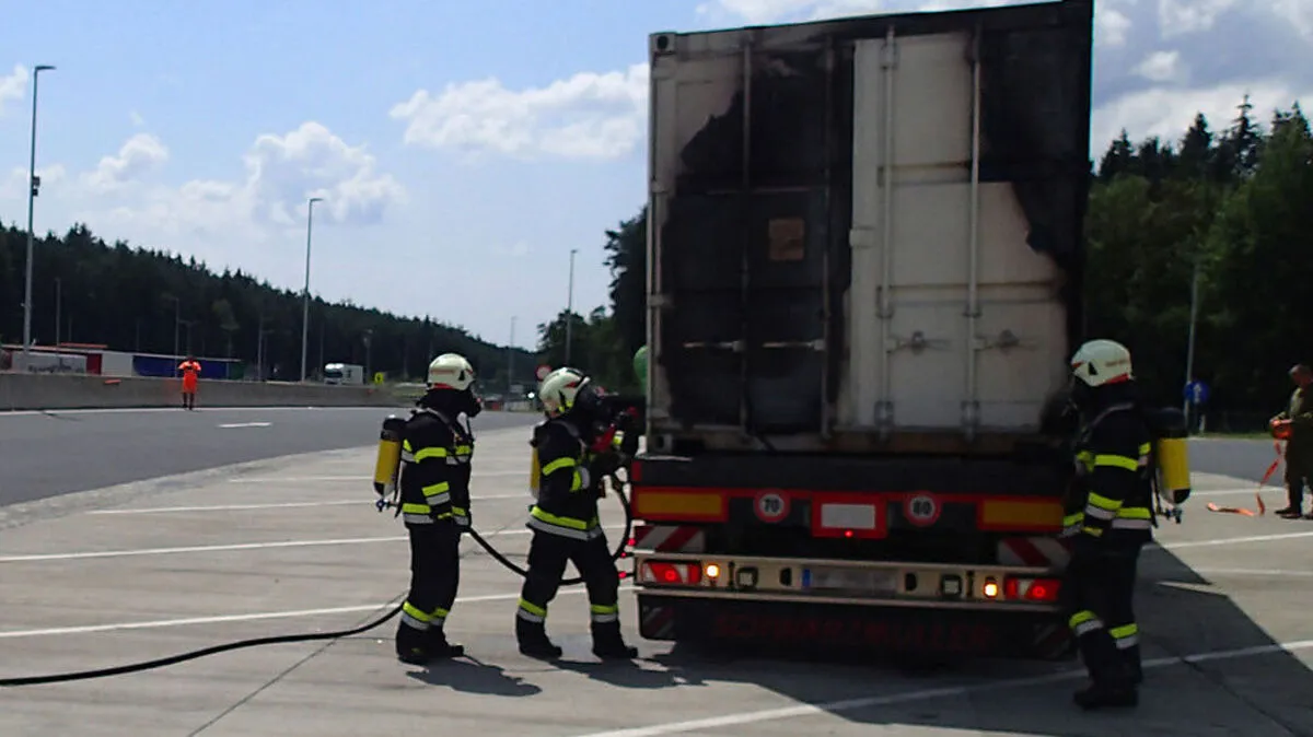 Auf der Südautobahn A 2 bei Bad Waltersdorf begannen Donnerstagvormittag in einem Container die Holzpellets einer mobilen Heizanlage zu brennen. Vier Feuerwehren waren sechs Stunden lang im Löscheinsatz.
