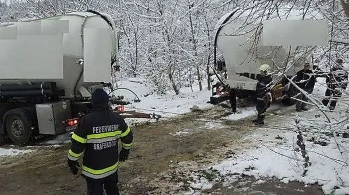 Am Dienstag geriet in Erdwegen, Gemeinde Grafendorf, ein Lkw-Fahrer mit seinem Fahrzeug ins Schleudern und kam von der Fahrbahn ab.