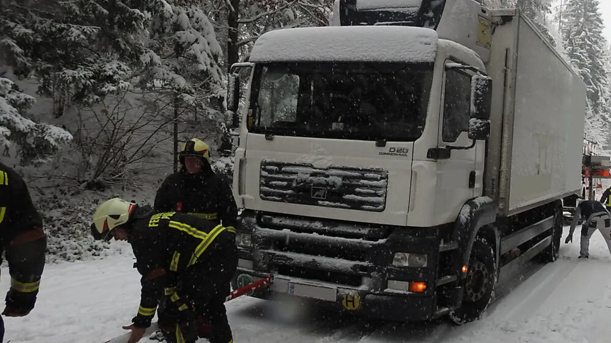 Am Dienstag blieben bei Fahrer mit ihren Lkw auf der schneebedeckten Fahrbahn der L432 Richtung Rabenwald stecken.