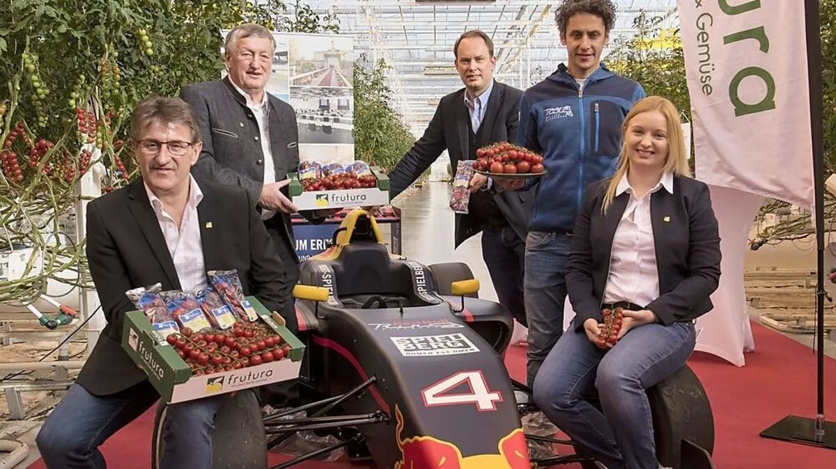Das Projekt Spielberg (Red Bull Ring) und die Frutura Thermal-Gemüsewelt in Bad Blumau gaben am Dienstag ihre neue Kooperation bekannt. Rennfahrer Patrick Friesacher brachte ein Formel-Rennfahrzeug ins Glashaus mit.