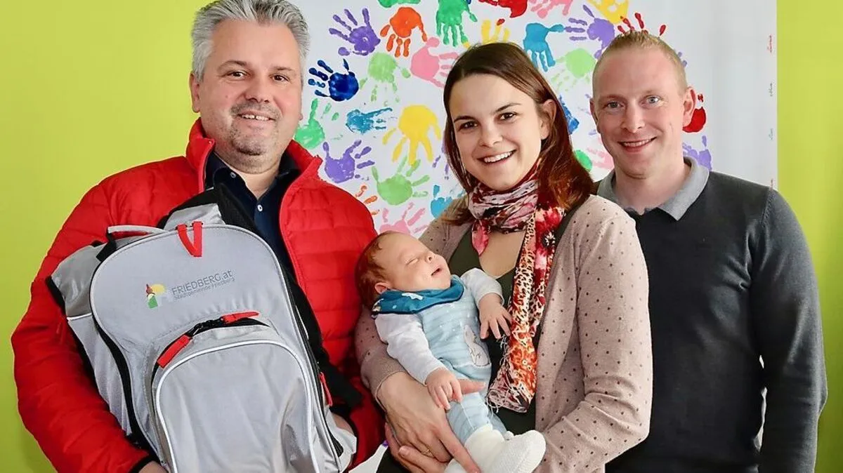 Mit einem netten Geschenk stellt sich die oststeirische Stadtgemeinde Friedberg bei den Eltern eines Neugeborenen ein. Es gibt einen Baby-Rucksack mit vielen wichtigen Dingen.