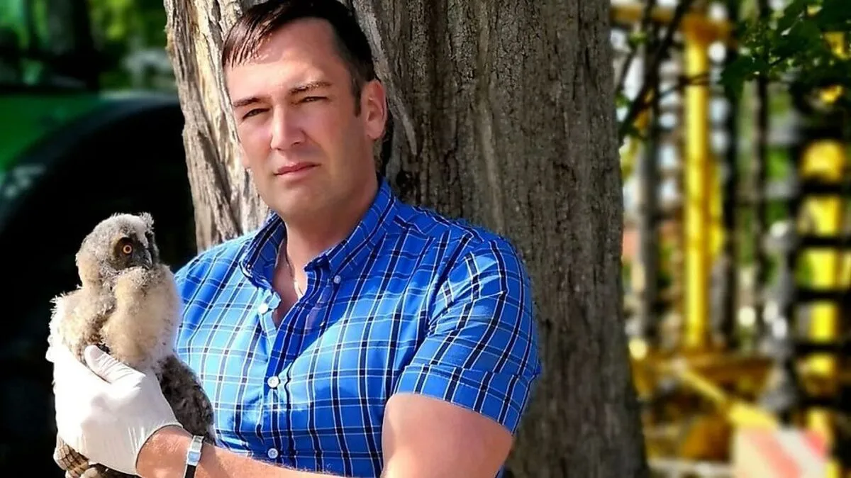 Gerhard Kornschober mit einer Waldohreule, die bei ihren ersten Flugversuchen auch am Boden gelandet ist