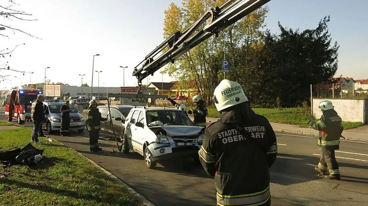 Zehn Feuerwehrleute der Stadtfeuerwehr Oberwart waren am Freitagvormittag bei einer Fahrzeugbergung im Stadtgebiet im Einsatz. Ein Pkw war auf einen anderen aufgefahren.