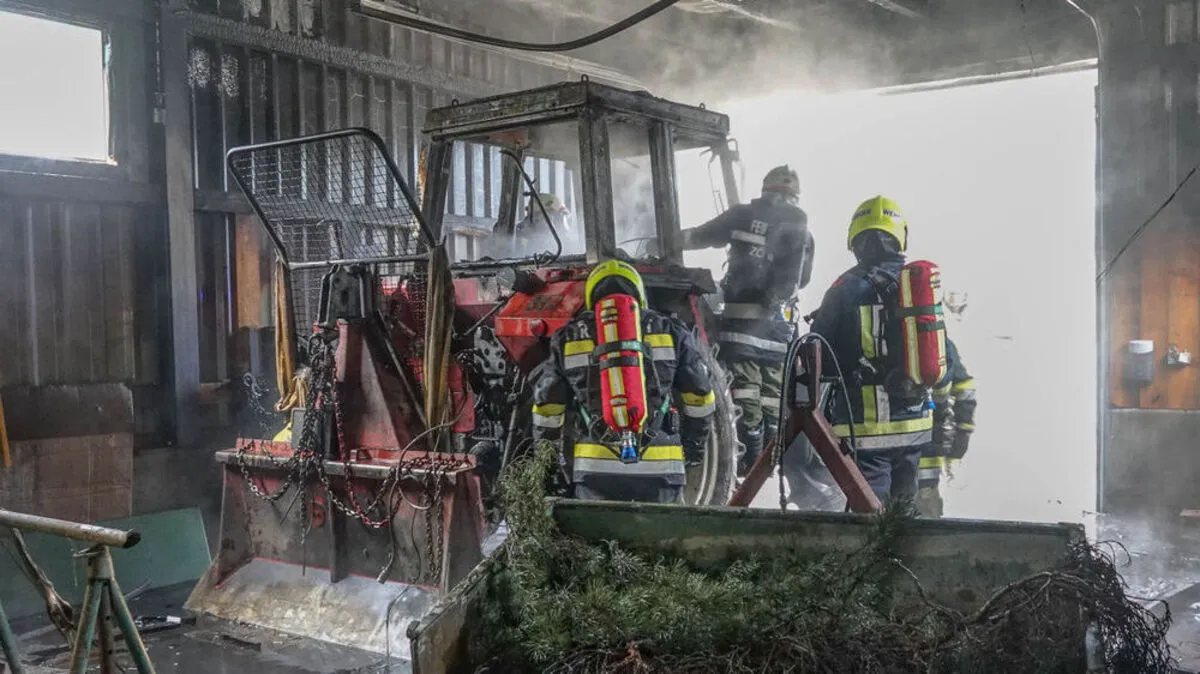 Aus noch unbekannter Ursache hatte es Donnerstagmittag in Zöbern (Niederösterreich) in einer Fahrzeughalle zu brennen begonnen.