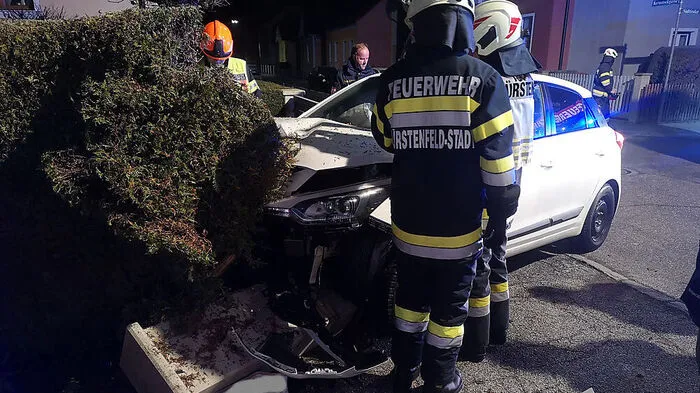 Ein Auto, das in einer Einfahrt gegen einen Zaunpfahl geprallt war, musste die Stadtfeuerwehr Fürstenfeld Sonntagfrüh bergen.