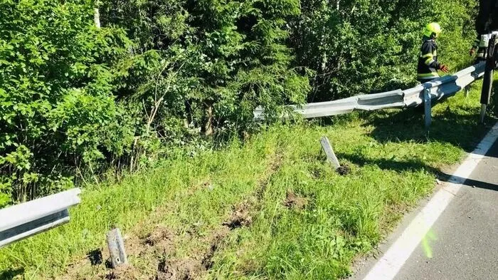 Pkw durchschlug Leitschiene und landete in der Böschung