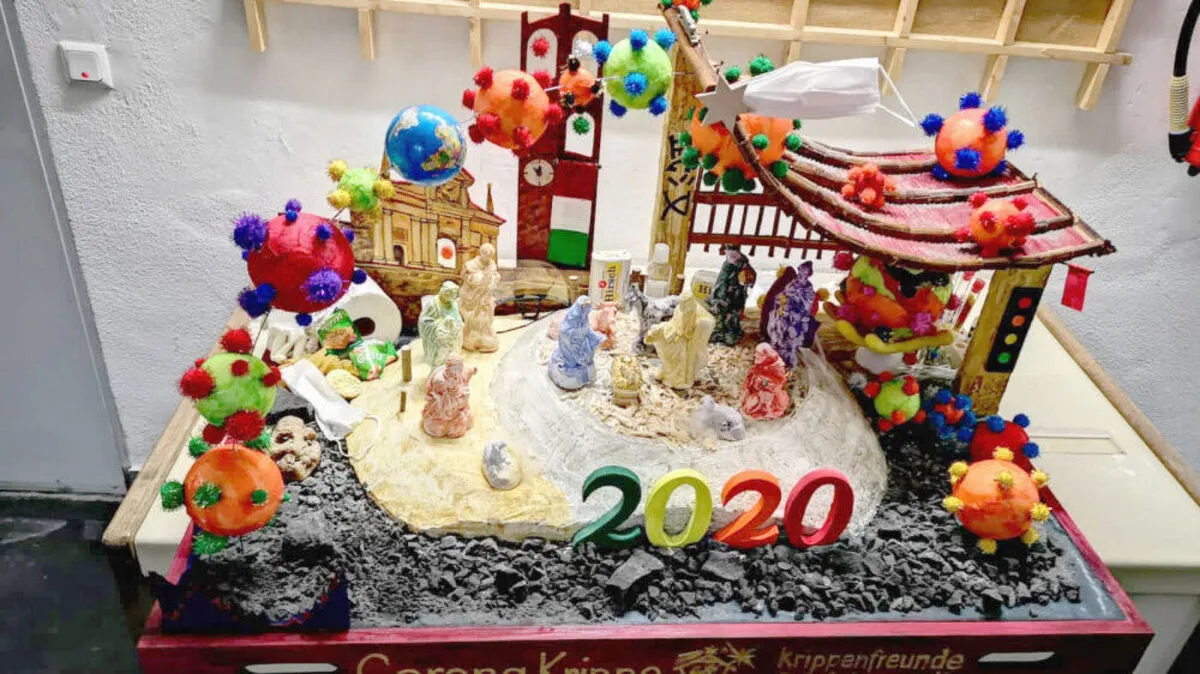 Mitglieder der Krippenfreunde Oststeiermark aus Hartberg haben eine Corona-Weihnachtskrippe gebaut. Rund um die Heilige Familie wird auf das Virus und das heurige Krisenjahr Bezug genommen. Die Krippe wird für „Licht ins Dunkel“ versteigert.