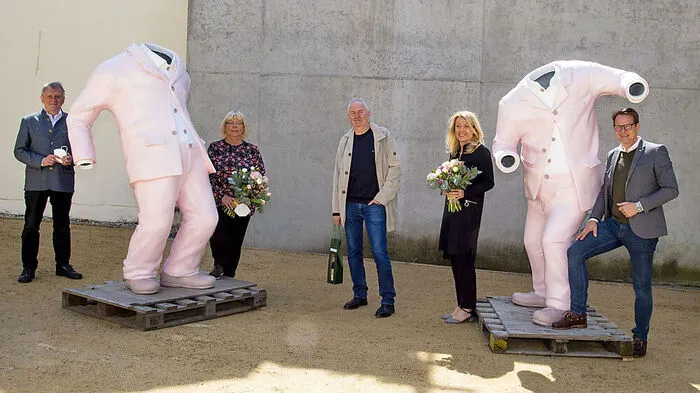 Gegenwartskünstler Erwin Wurm stellt am Hauptplatz in Hartberg mit "Der Gurk" eines seiner monumentalen Kunstwerke aus. Im Stadtmuseum wurde eine Ausstellung mit seinen Werken eröffnet.