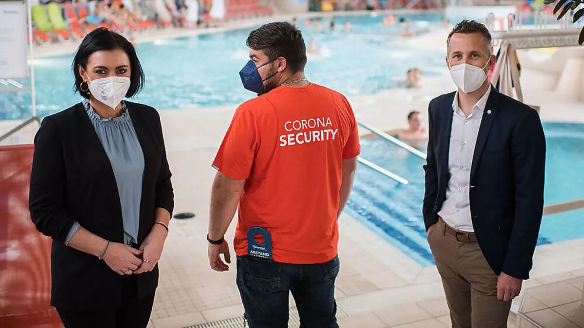 Tourismusministerin Elisabeth Köstinger machte sich im Thermenresort Loipersdorf ein Bild von den Öffnungen im oststeirischen Thermentourismus.