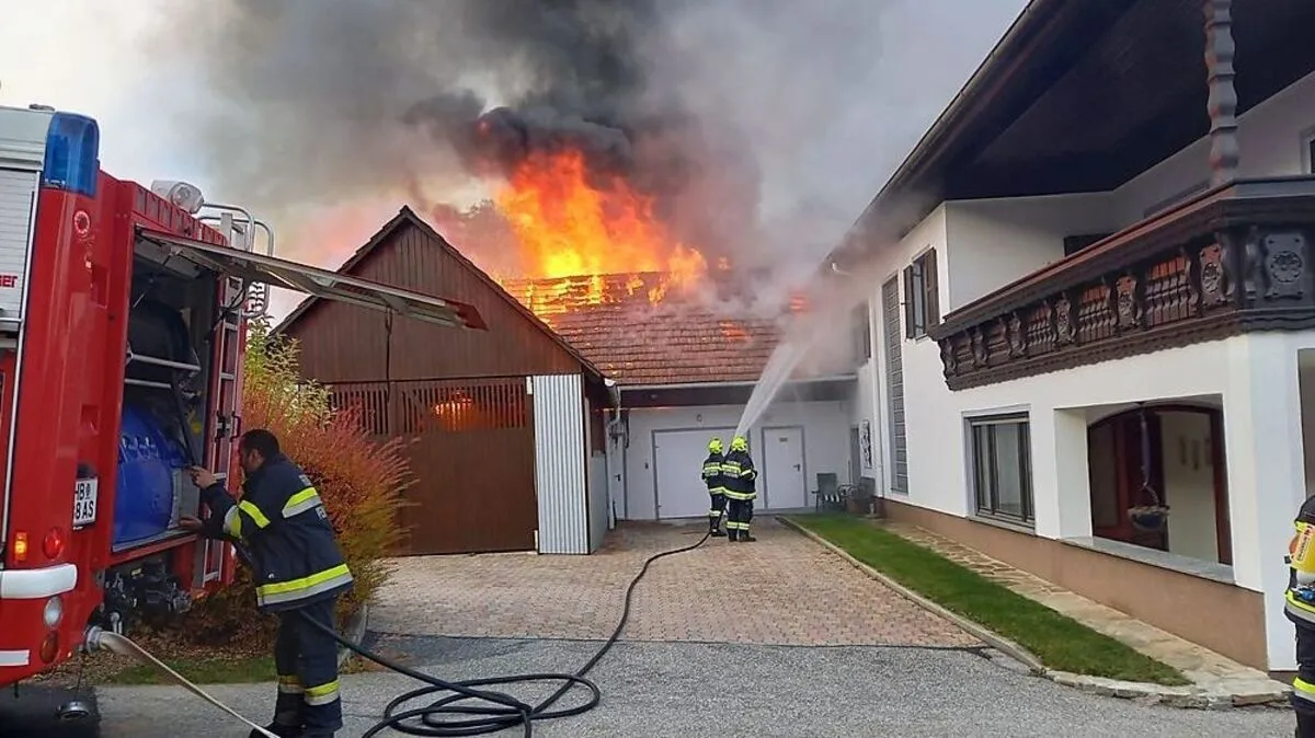 44 Feuerwehrleute löschten in Vollbrand stehendes Nebengebäude