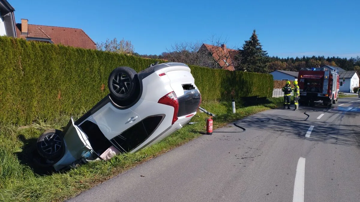 Lenkerin verletzt: Pkw überschlug sich und kam am Dach zum Liegen