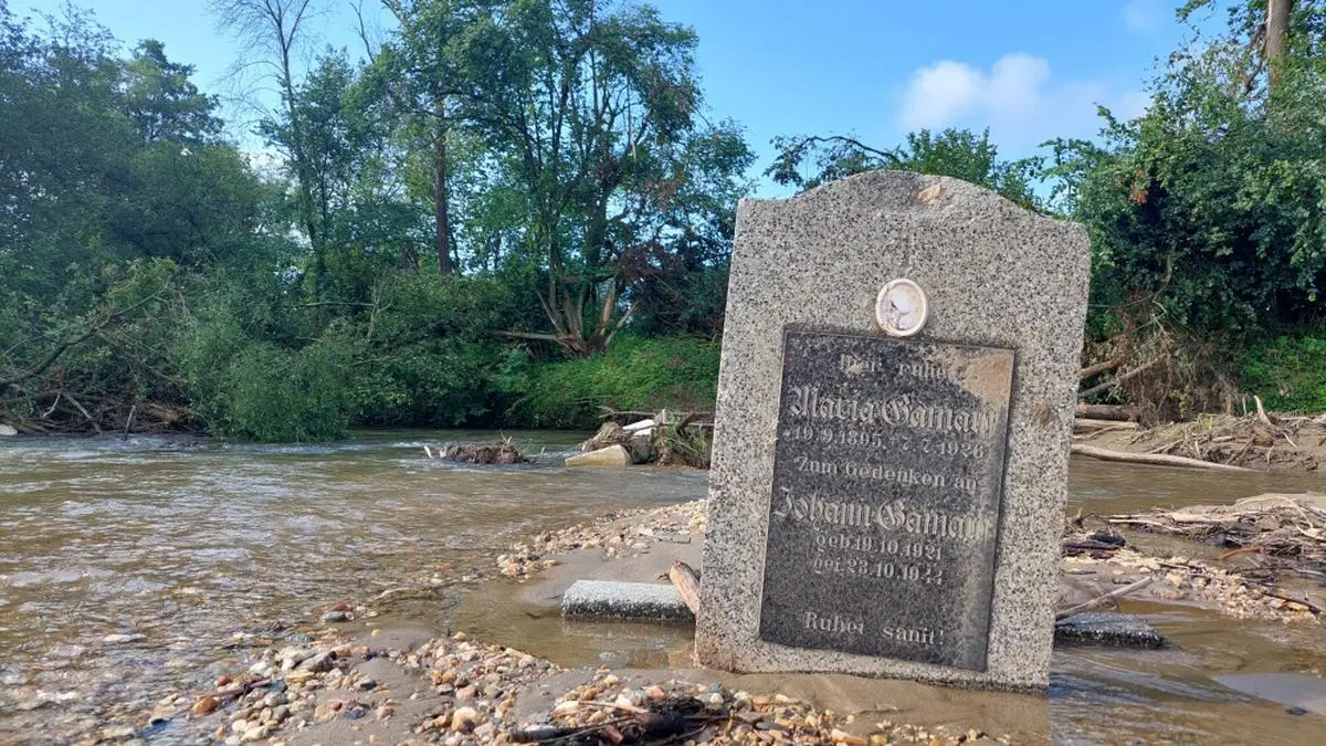 Ein alter Friedhof mitten im Gewässer? Ein Dorf, das einst überschwemmt wurde? Die Fantasien waren entlang der Lafnitz im burgenländischen Markt Allhau an der Grenze zur Steiermark durchaus mit einigen durchgehen: Vor einem Jahr ragte ein fast 100 Jahre alter Grabstein mitten aus dem Flussbett – rundumher waren weitere Grabeinfassungen verstreut.