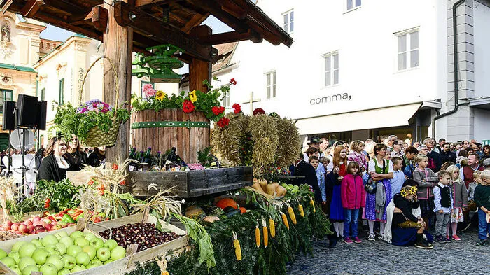 Mit mehreren Tausend Besuchern feierte die Stadt Hartberg am Sonntag im Freien den Erntedank-Gottesdienst und anschließend das alljährliche Winzerfest.