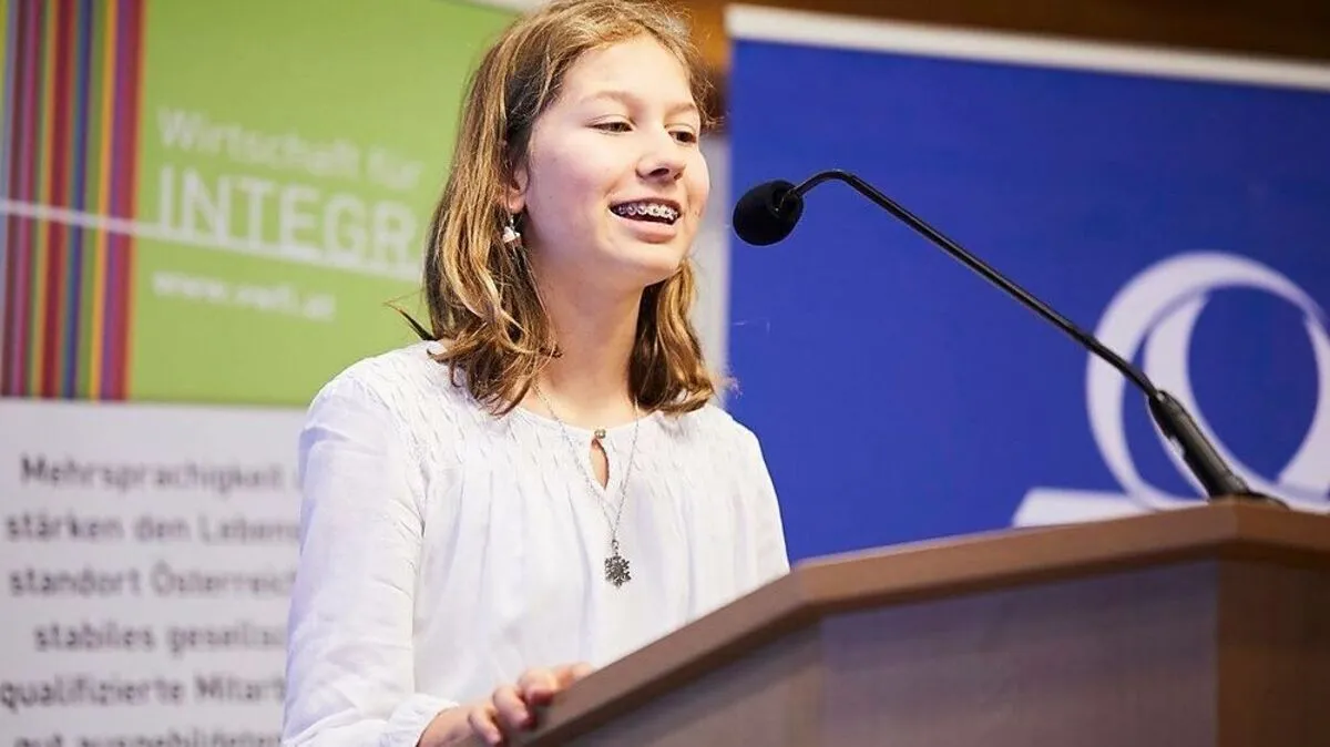 Von 592 Schülern überzeugte die Grazerin Emily Meixner (12) mit ihrer freien Rede zu Gerechtigkeit – zweisprachig.