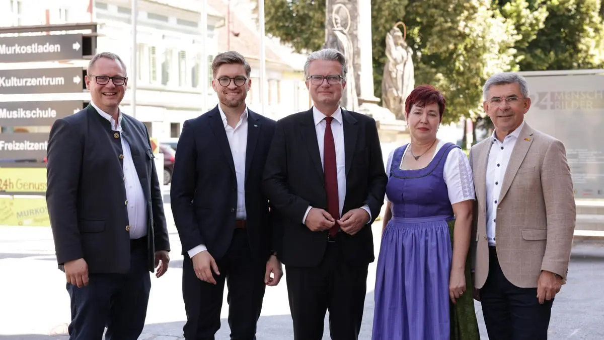 Schwimmbadverpachtung, leistbarer Wohnraum, Schutz der Au sowie Aus- und Umbau der Schulen und Kindergärten – für die ÖVP Mureck sind die örtlichen Baustellen klar. Mit dem neuen Spitzenkanidaten Simon Koiner-Graupp für die Gemeinderatswahl 2025 soll unter dem Namen „Team für Mureck – Liste Murecker Volkspartei“ der neue Bürgermeister der Stadtgemeinde gefunden sein – so das Ziel. „Es freut mich außerordentlich, dass mit Simon Koiner-Graupp ein Spitzenkandidat gefunden werden konnte, der Kompetenz, Leidenschaft und eine tiefe Verwurzelung in der Steiermark in einer Person bündelt“, schwärmt Landeshauptmann Christopher Drexler bei der Vorstellung des Generationenwechsels.