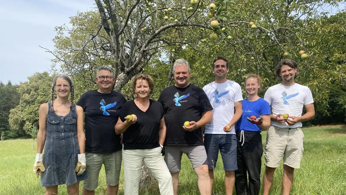 Saftig grüne Gräser, Wiesenblumen, auf denen sich unzählige Schmetterlinge, Bienen und Heuschrecken tummeln und großkronige, teils jahrzehntealte Obstbäume – die knapp einen Hektar große Streuobstwiese am Anwesen von Familie Dunkel aus Karbach (Gemeinde Straden) ist eine von rund 80 wieder aufgeforsteten Streuobstwiesen in der Südoststeiermark.