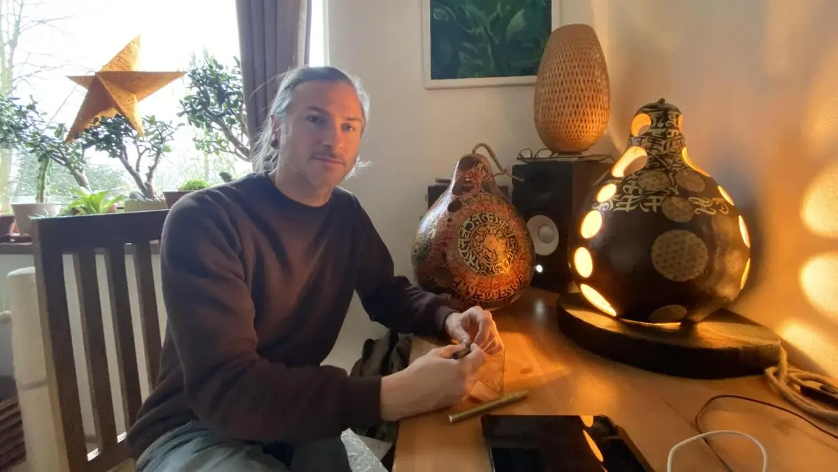 Johannes Maderthaner stellt aus afrikanischen Flaschenkürbissen einzigartige Lampen her