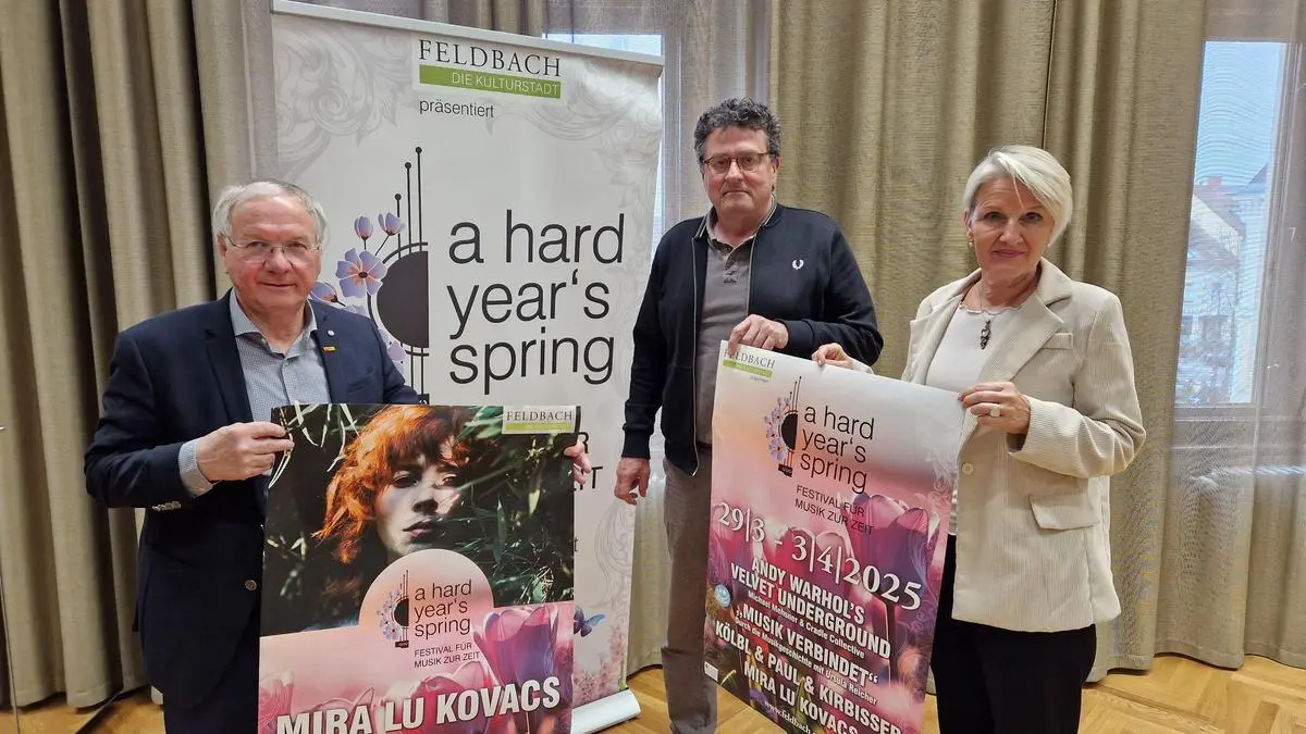 „Ausgesucht, besonders und herzerwärmend“, so umschreibt Feldbachs Kulturreferent Michael Mehsner das Programm von „a hard year‘s spring“, das von 29. März bis 3. April in Feldbach stattfindet. Auch wenn die Zeiten budgetär immer schwieriger werden, halte man an Formaten für Kultur in Feldbach fest, betont Bürgermeister Josef Ober. Und das „Festival für Musik zur Zeit“ ist eines davon und zwar ein etabliertes, das es seit 2016 gibt.