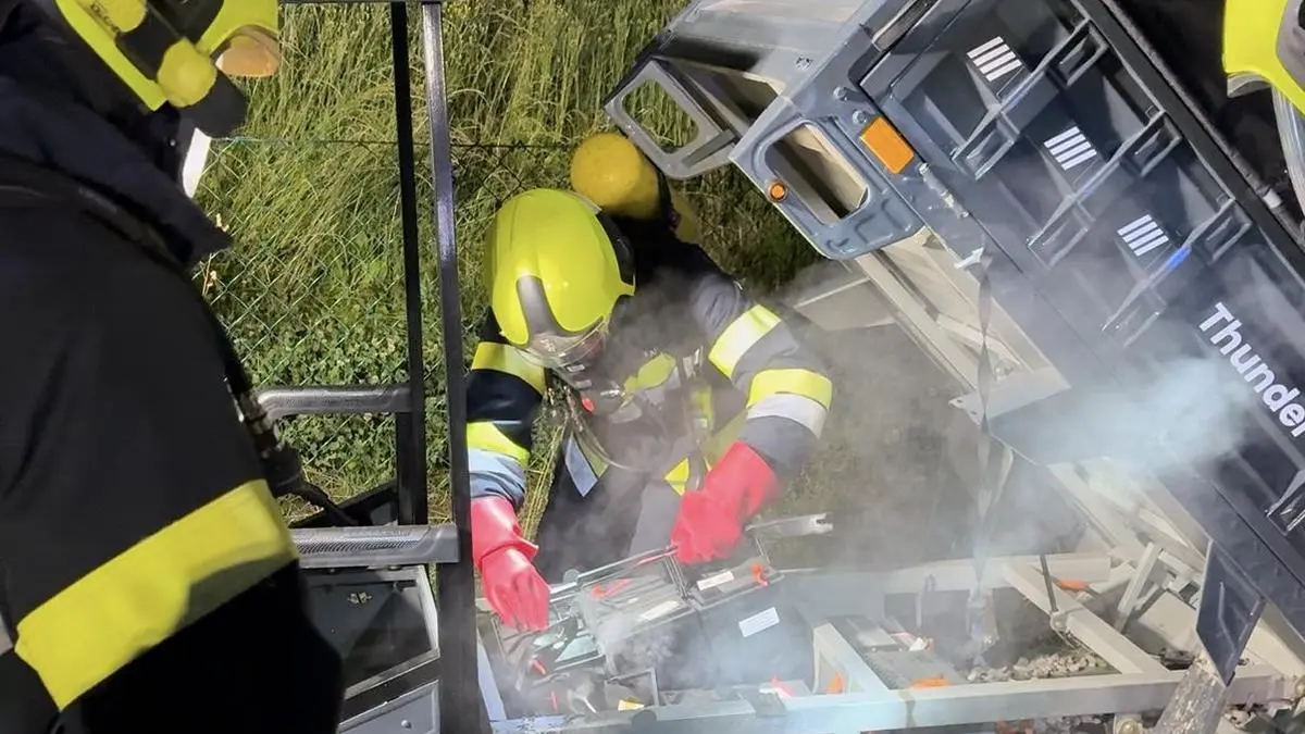 Die Wehren Gnas (Einsatzleitung), Grabersdorf und Obergnas waren mit mehr als 30 Einsatzkräften und sieben Fahrzeugen am Brandort. Unter schwerem Atemschutz konnte das Lithium-Ionen-Phosphat-Batteriepaket aus dem Fahrzeug ausgebaut und in einem Wasserbehälter gesichert gelagert werden. Verletzt wurde niemand.